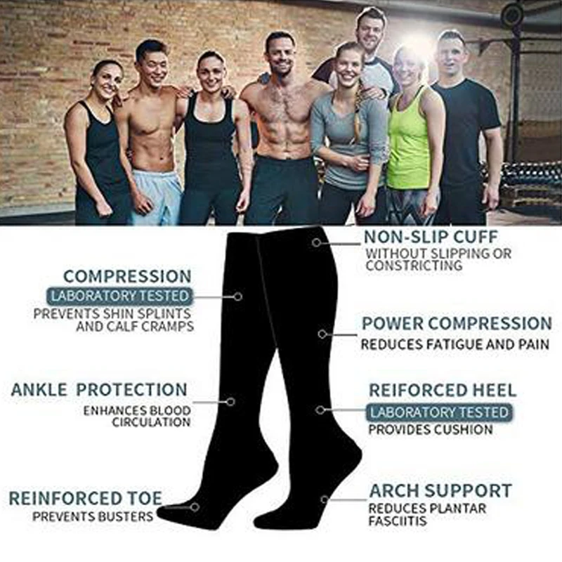 Чулки Компрессионные МужскиеЖенские, длинные дышащие спортивные гольфы, однотонные, для бега, баскетбола, занятий спортом