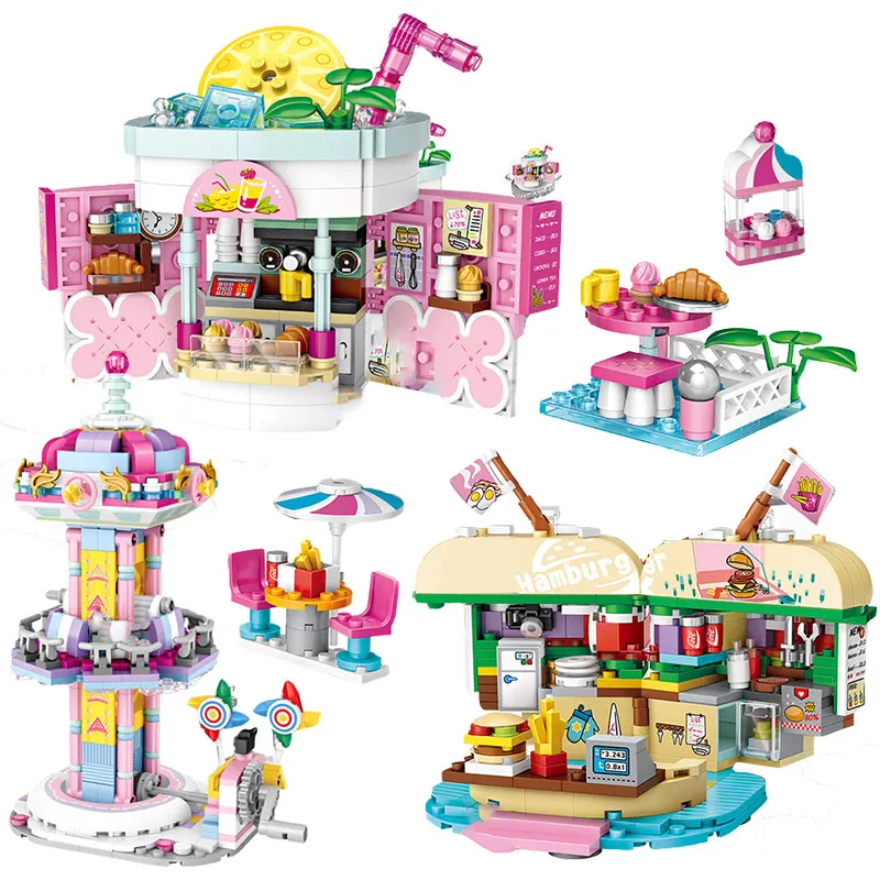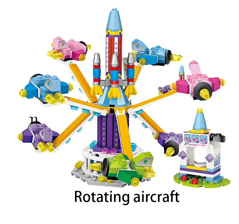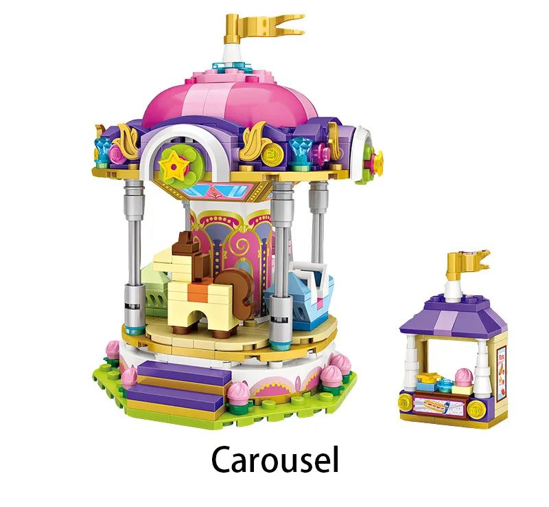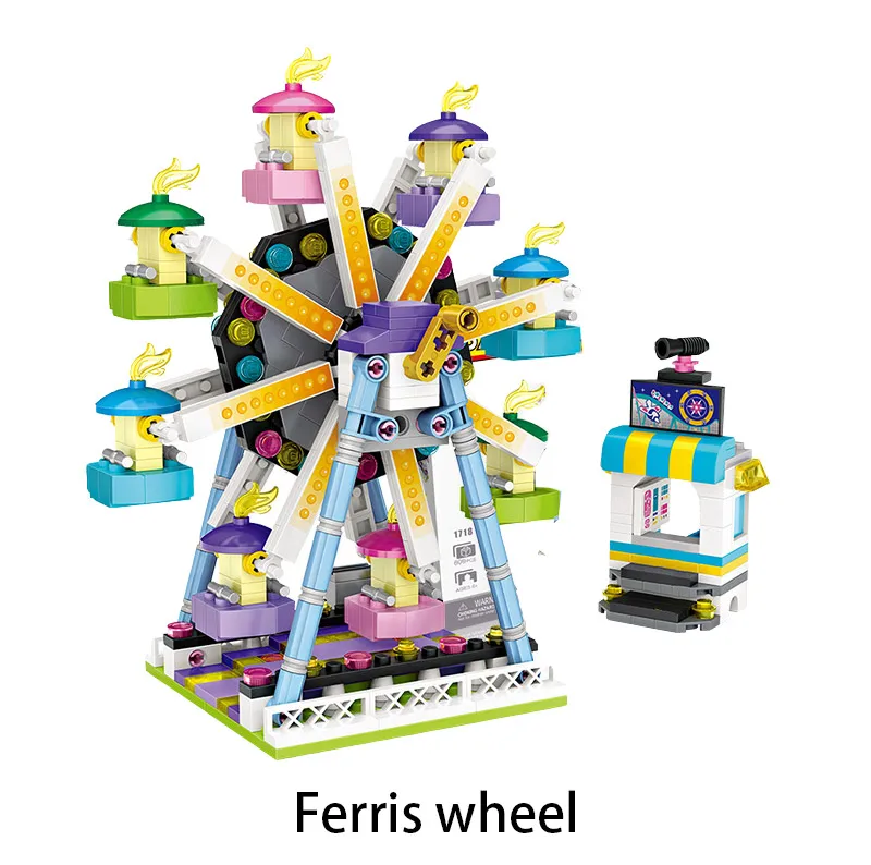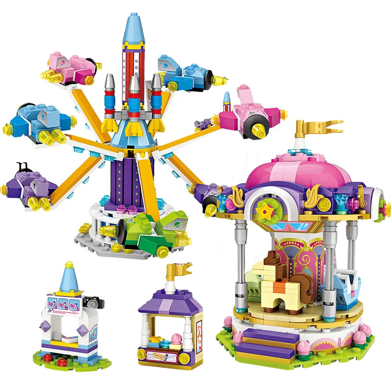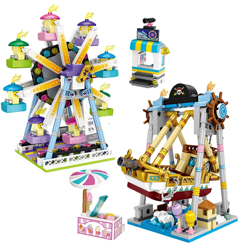 Парк развлечений, мини-блоки, друзья, колесо обозрения, карусель, пиратский корабль, строительные блоки DIY, кирпичи, игрушки для девочек