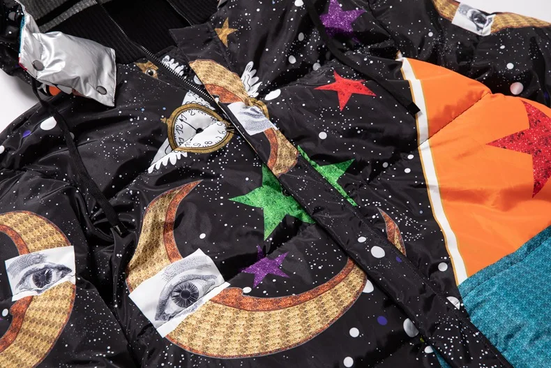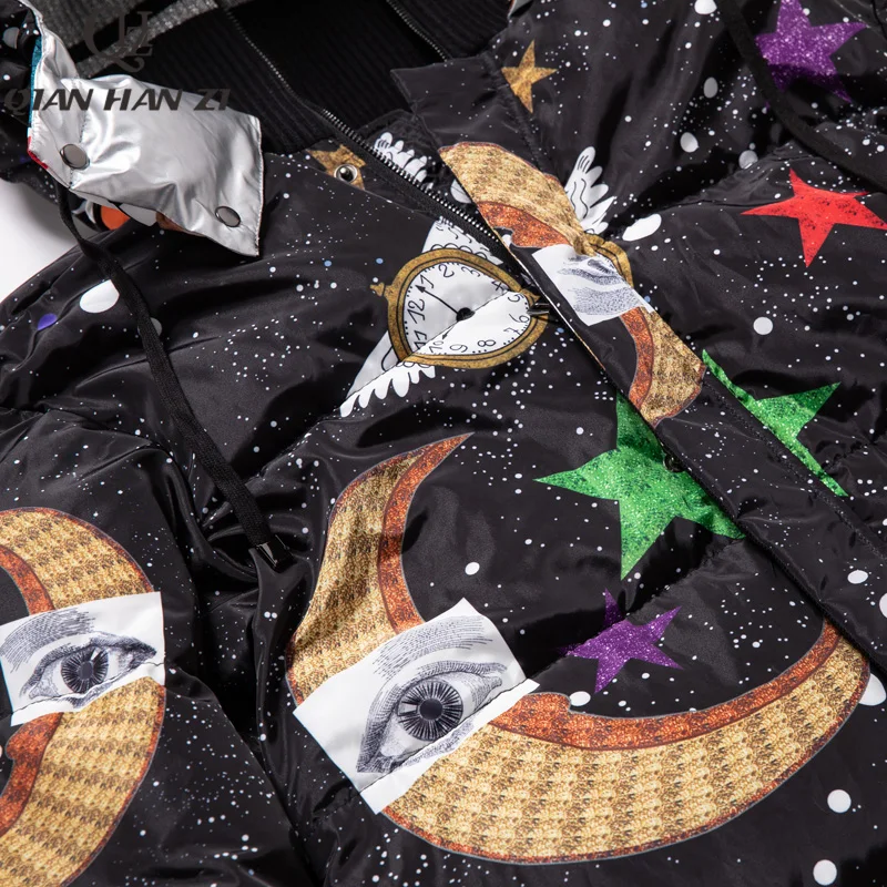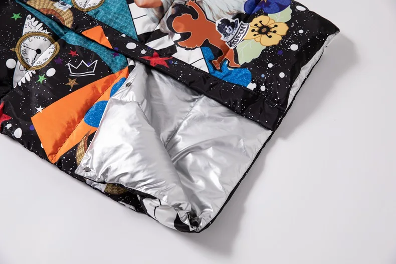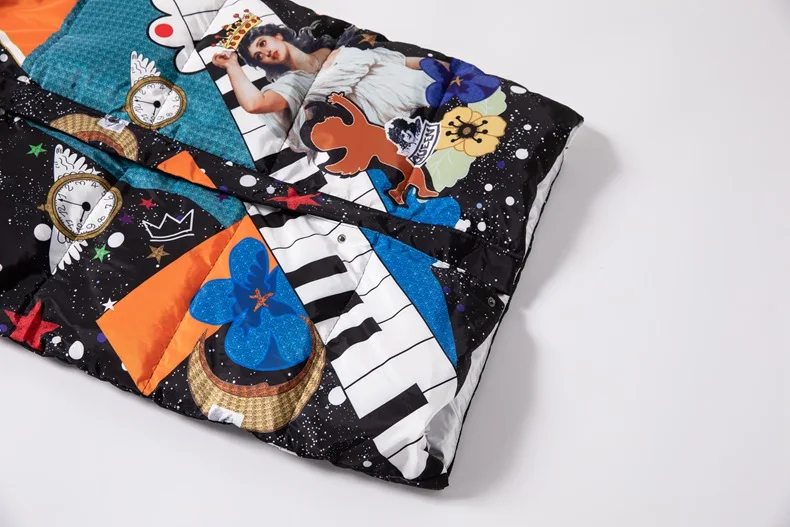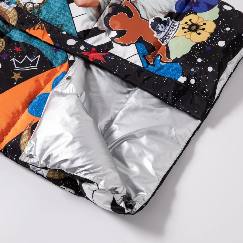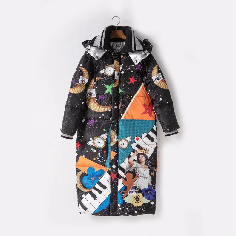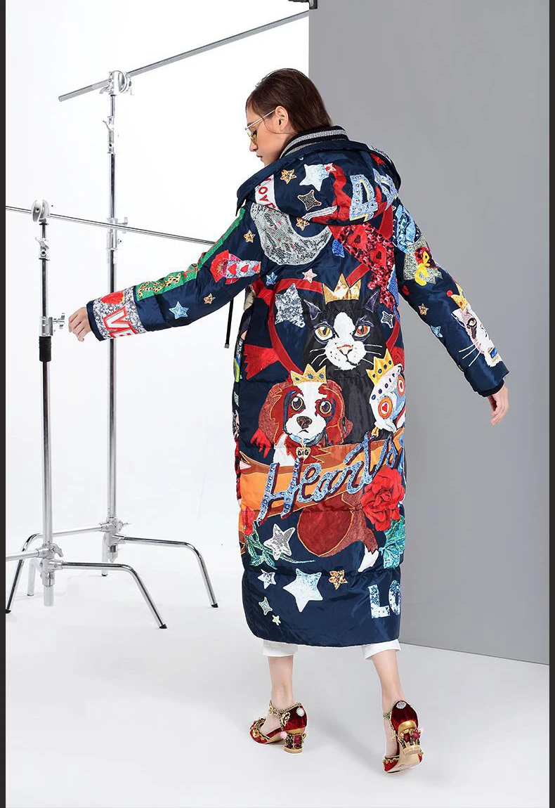 Женский пуховик с принтом Qian Han Zi, длинный теплый пуховик на белом утином пуху, зимнее пальто свободного кроя