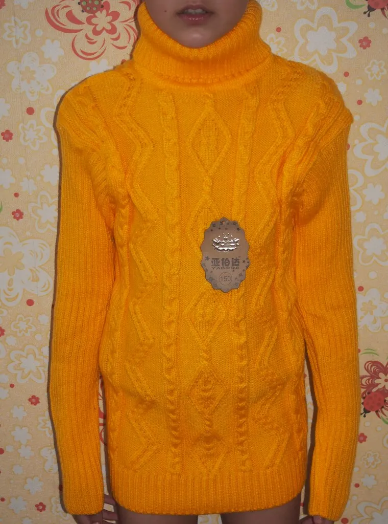 Свитерок большеват, брала на вырост. Ростовка на 150 см, но на 134 (на фото ребенок) слегка великоват. ДУмаю, на 150 будет маловат. Цвет яркий, красивый, соответствует тому, что на картинке. Очень мягкий, приятный на теле.
