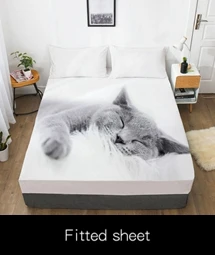 Натяжная простыня 3D, простыня с эластичным рисунком спящего кота, ...