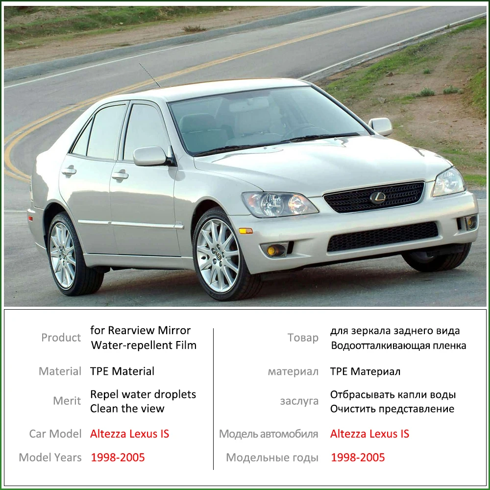 Для Lexus IS IS200 IS300 200 300 Toyota Altezza XE90 1998 2005 полноэкранное зеркало заднего вида, непромокаемая противотуманная пленка, аксессуары