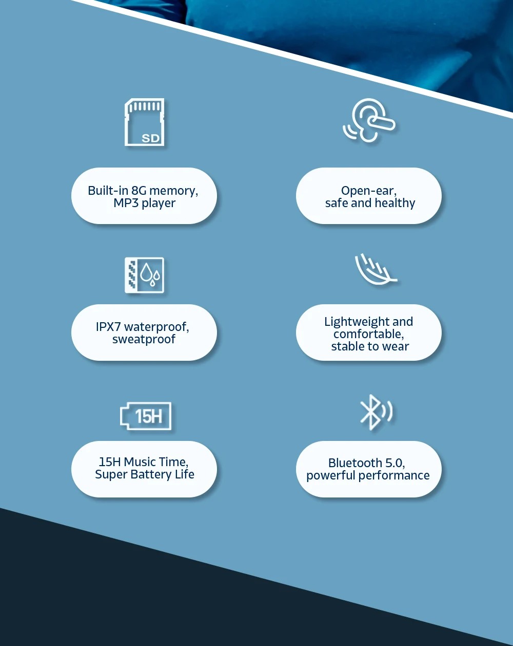 1. Встроенная память 8 ГБ, mp3-плеер, свободное переключение Bluetooth/MP3-плеера.