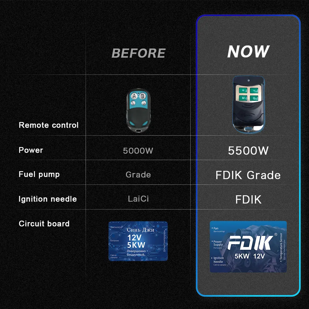Топливная трубка была меньшего диаметра чем нужно, пришлось купить топливный шланг в автомагазине. Дисплей простой как двери, переключение режим мощности 5 позиций и температура какую вы хотите выставить.Бюджетненько, но работает. Если бы еще управление можно было поменять на таймер вкл и выкл, вообще было бы супер Но в кропивницкий доставили укрпочтой за 7 дней после заказа, тут огромный плюс!