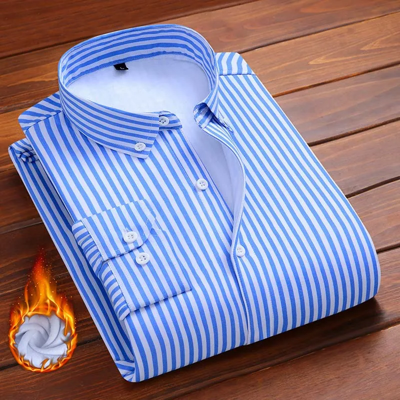 Рубашка Aoliwen мужская с фланелевой шерстяной подкладкой, модная теплая приталенная, полосатая Повседневная сорочка, мягкая не усасывающая, зима