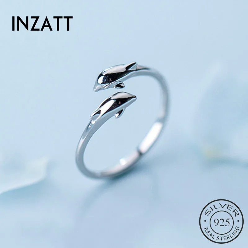 Женское Открытое кольцо с дельфином INZATT, изящное ювелирное изделие из настоящего серебра 925 пробы, минималистичные аксессуары, подарок, 2019