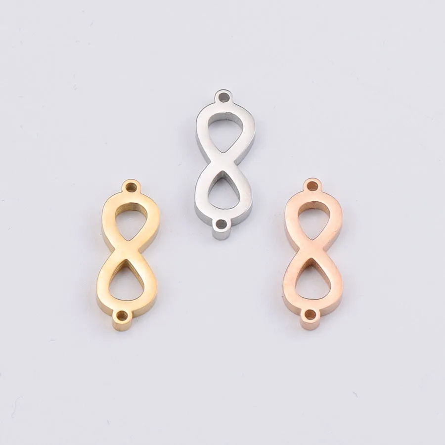 Серебро/золото/розовое золото нержавеющая сталь Бесконечность очарование 2 отверстия соединитель для изготовления браслетов зеркальная полировка оптовая продажа 20 шт