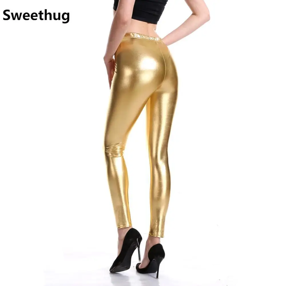 Для женщин сплошной зеленый металлик Золото Серебро Леггинсы партия...