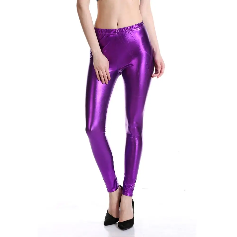 Женские блестящие леггинсы с металлическим блеском, сексуальные ярк...