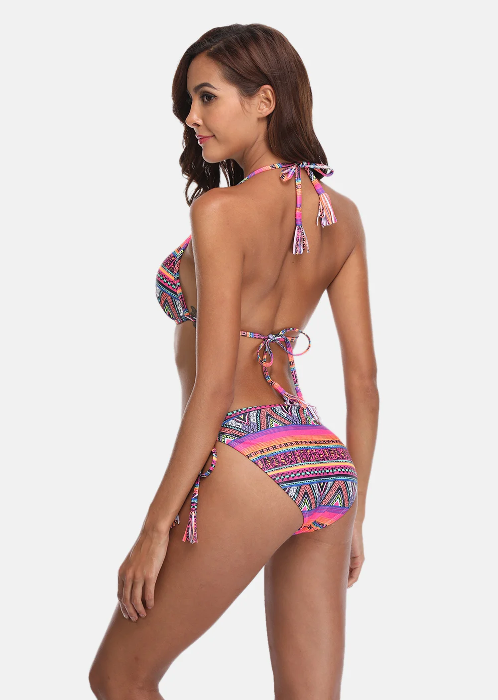 Купальник бикини Attraco Женский, пикантный бандажный купальник в ретро стиле с цветочным принтом, с боковой завязкой, с чашками пуш-ап, летняя пляжная одежда