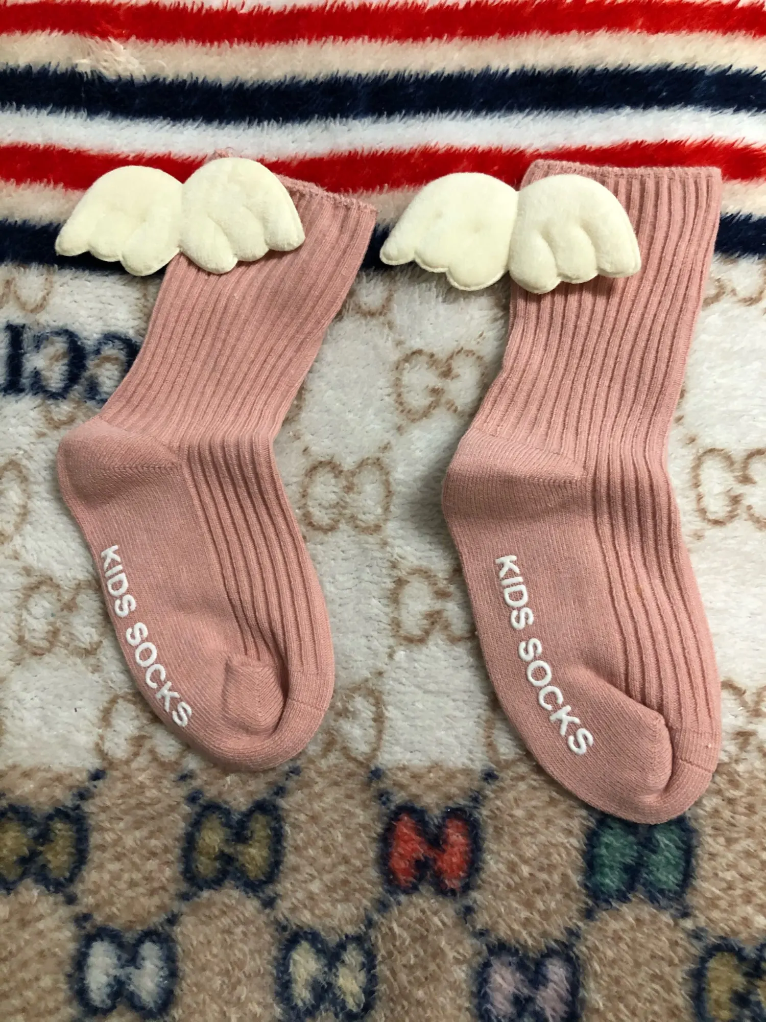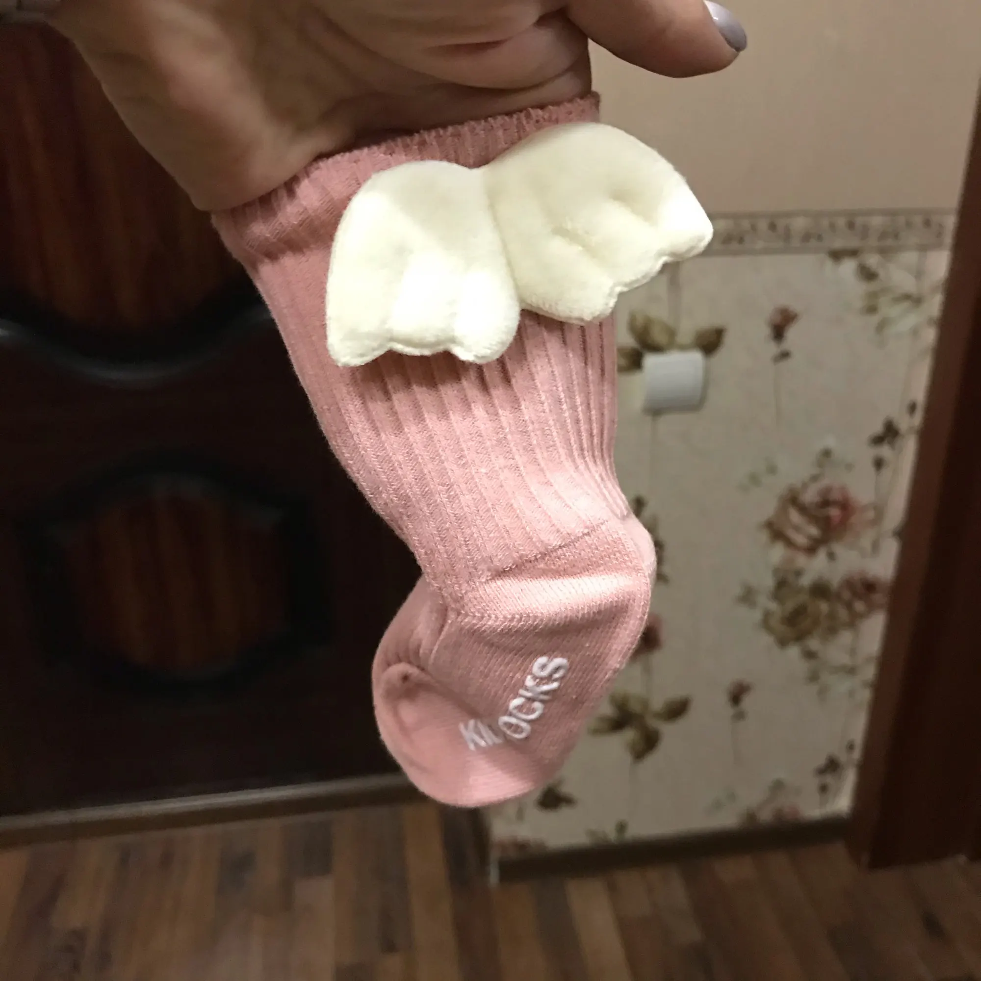 Хлопковые носки до колена для девочек, однотонные, ярких цветов, с крыльями ангела, для лета и осени