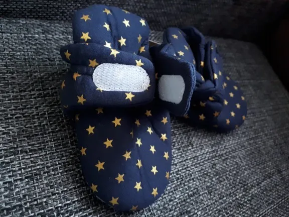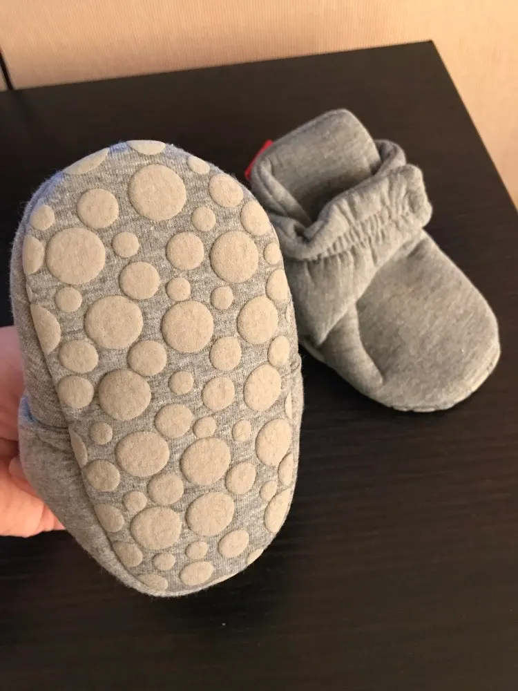 Тапочки хорошие. Ребёнку 10 месяцев, размер ноги 21, подошли в самый раз с небольшим запасом. Застежка крепкая, хорошо фиксируются вокруг щиколотки. Пока резиночка на пятке даже туговата