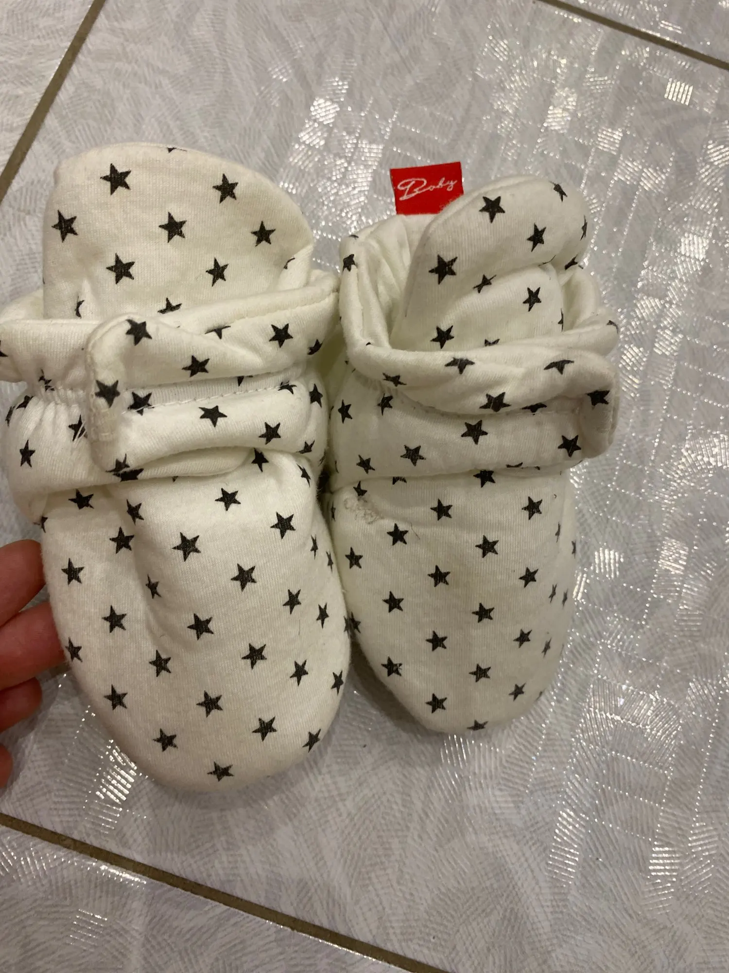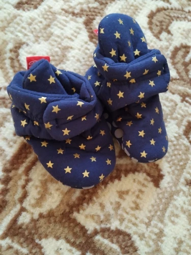 Доставка 18 дней до Ярославской области. Пришли в прозрачном пакете, с биркой. Мягкие, из приятного материала. Запах отсутствовал. Расцветка star blue соответствует заявленной продавцом. Ботиночки красивые- темно- синие с золотыми звездами. Подошва не скользящая. На липучке, достаточно крепко фиксируются, поэтому с ножек не должны свалиться. Размер 7-12 Months взяла к рождению ребёнка, на вырост. В деле не пробовала, т.к. ещё не родился малыш. Брала за 300 рублей. Своих денег стоят, рекомендую к покупке.