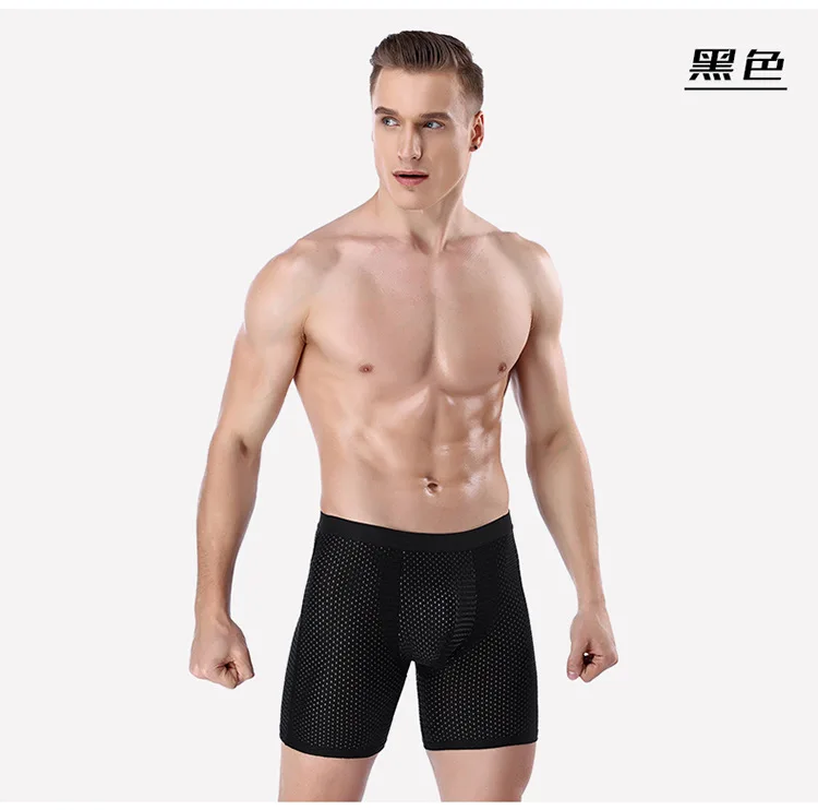 Шорты мужские из вискозы, дышащие сетчатые длинные штаны, Крутое удобное нижнее белье, подарок