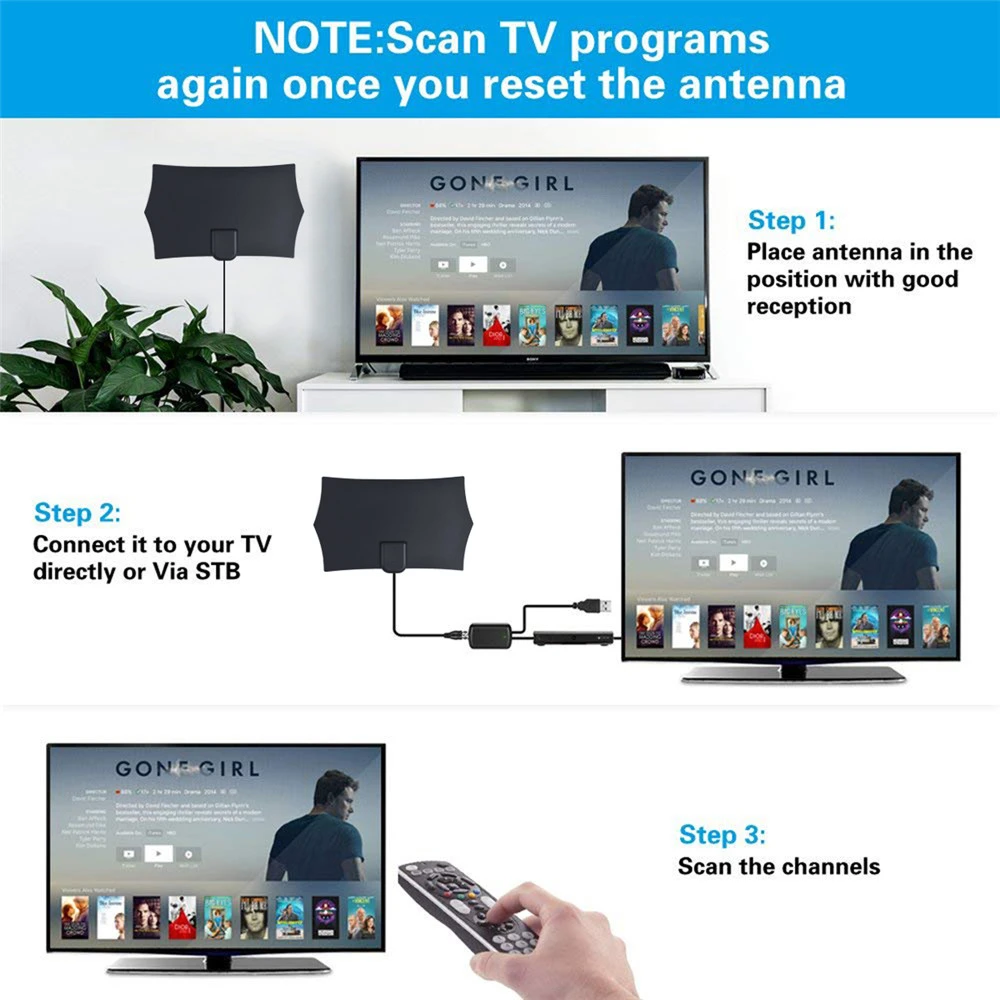 Спецификация:Поддержка 8K 4K 1080pДиапазон 800 мильКоаксиальный кабель: 3,0 м длинаТип разъема: f-головка с ТВ-адаптеромV.S.W.R.:<= 1,5, Макс: 1Сопротивление: 75 ОмМногонаправленная возможностьВызов всех каналов «бесплатно»Коэффициент усиления: 20 дБи (без усилителя)Чертежи на заказРабочая частота: 174 ~ 240 МГц, 470 ~ 862 МГцРазмер продукта 210*120*0,8Рабочая температура: -45 ~ 85Температура хранения: -45 ~ 85Сколько бесплатных каналов вы можете получить?Dtv.gov/maps: Узнайте, где расположены вещательные башни в вашем регионе.Антенна веб: Узнайте, сколько бесплатных каналов доступно у ваших местных вещателейПредоставляет списки доступных каналов, карты покрытия и карты анализа динамического сигнала для любого местоположения.Пожалуйста, обратите внимание!1. Если у вашего телевизора нет встроенного тюнера, необходимо установить телеприставка для прослушивания сигналов HD TV.2. Если сигнал не удовлетворяет или доступно только несколько каналов, попробуйте подключить усилитель. Держите телевизионную антенну вдали от источников помех, держите телевизионную антенну вдали от таких больших устройств энергопотребления, как кондиционер, Лифт, Фен и микроволновая печь и т. Д. Зоны с большими препятствиями, такими как долины, горы, здания и т. Д.3. Сила сигнала антенны может варьироваться в зависимости от расстояния от башни, местности и погоды. При необходимости Установите антенну в другом месте. Лучше всего, чтобы антенна была в прямой видимости с ТВ-башней и избегайте препятствий. Всегда повторно Сканируйте каналы после перемещения антенны.