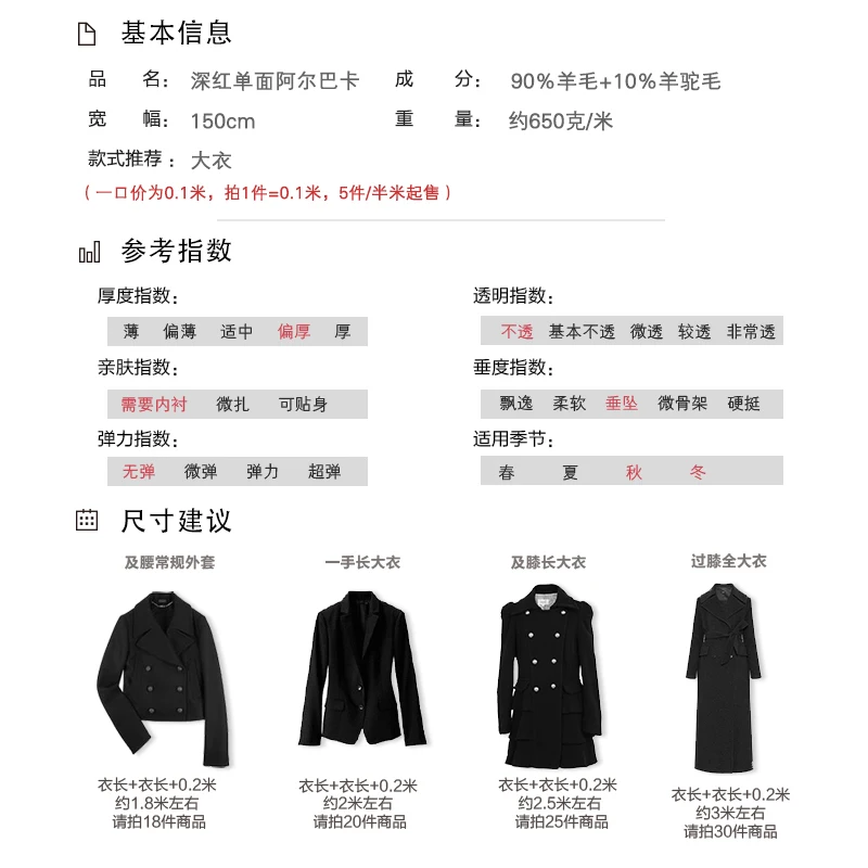 Темно-красная ткань, высококачественная шерсть альпака с покрытием,...