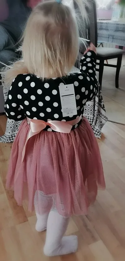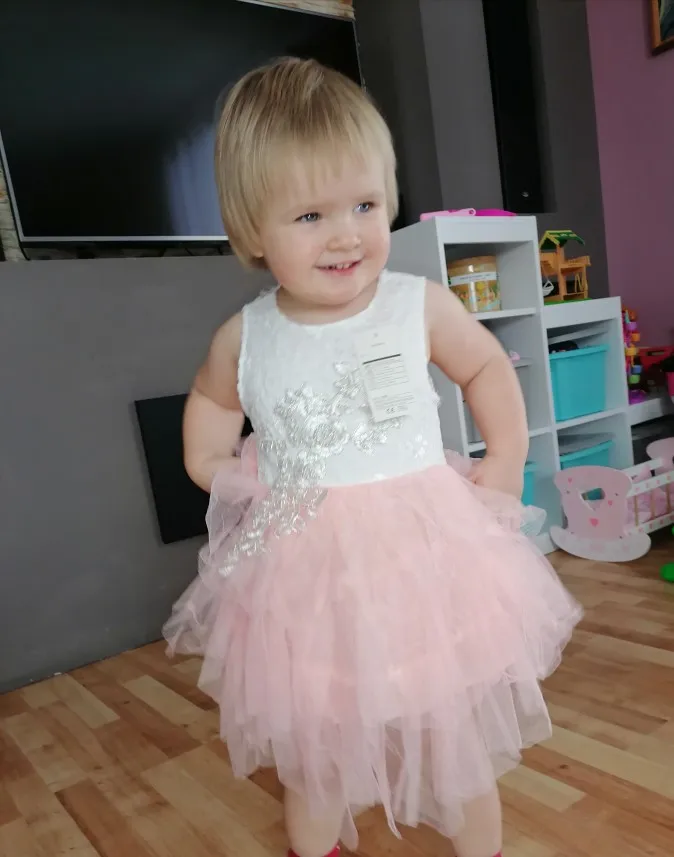 Sukieneczka śliczna. Dokładnie wykonana. Przesyłka dotarła do Polski w 12 dni Wymiary rozpisane idealnie ale niestety pod spodem haleczka jest zbyt krótka i widać pupę. Może dla szczuplejszy dziewczynki byłaby ok bo wtedy inaczej się układa. Trzeba zamówić o rozmiar większą