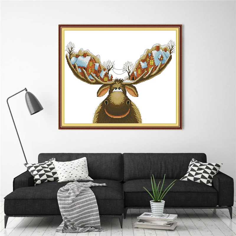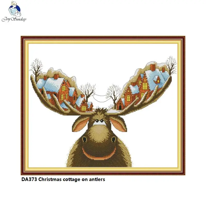 Набор для вышивки крестиком Joy Sunday рождественский дом на оленьих рогах, для рукоделия