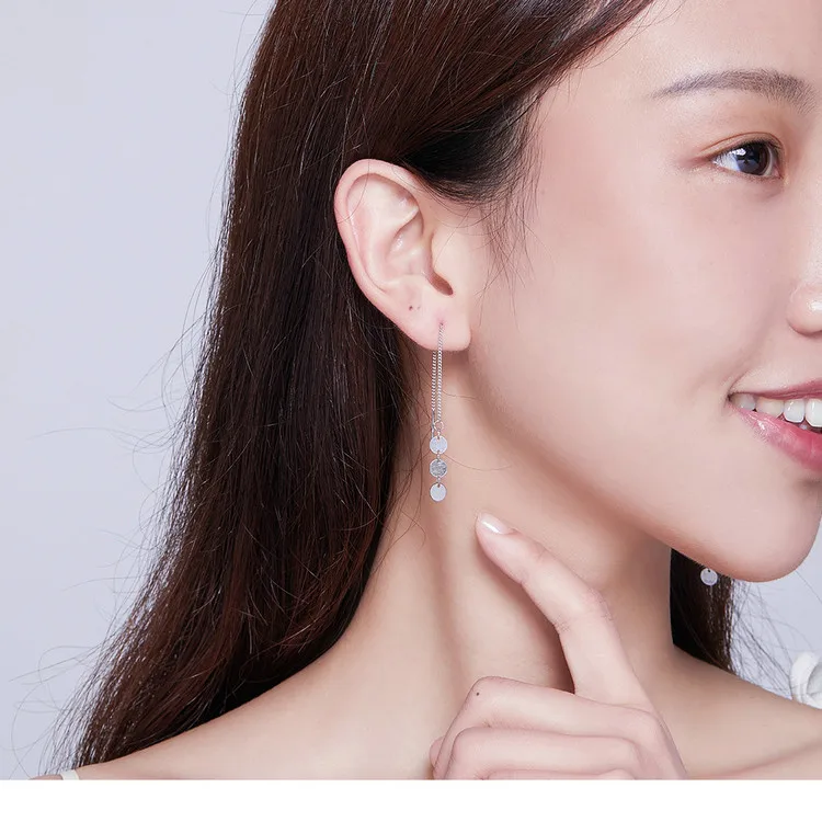 Серьги-подвески женские из серебра 100% пробы с блестками