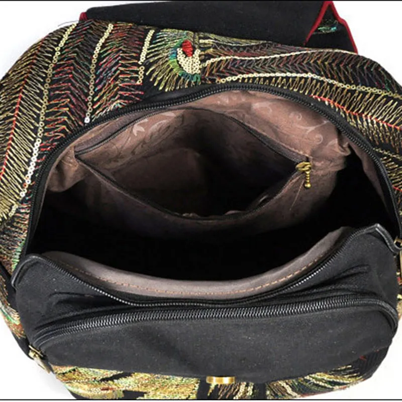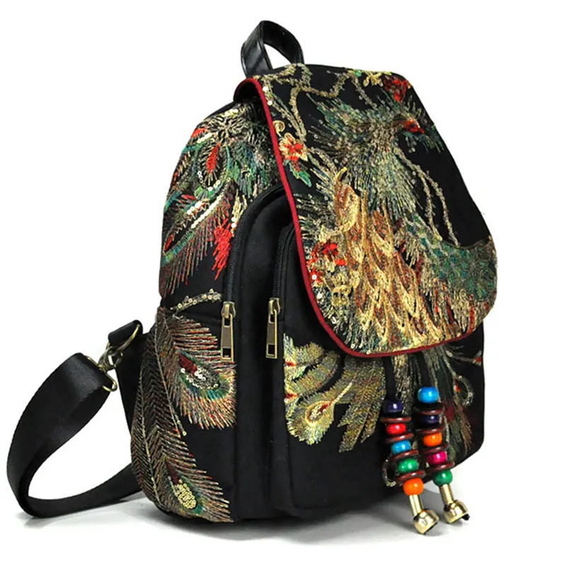 Новый Винтажный женский рюкзак с вышивкой павлин феникс блестки Рюк...