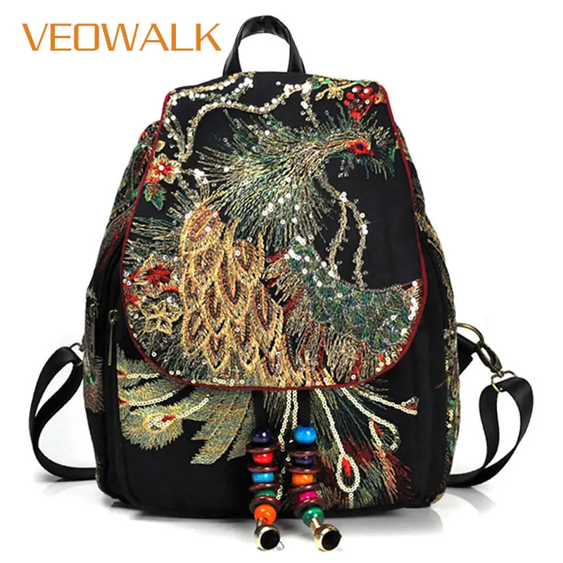 Veowalk павлиньи блестки вышитые женские холщовые рюкзаки, женские ...