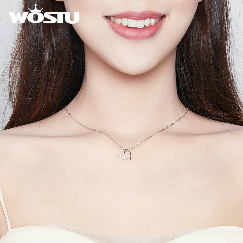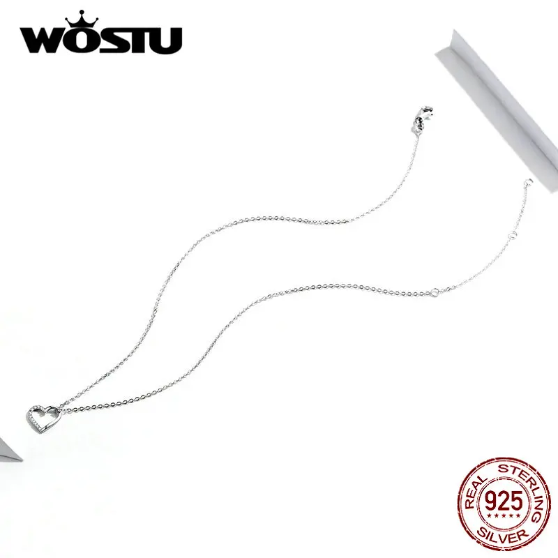 WOSTU, 100% Настоящее серебро 925 пробы, ожерелье в форме сердца для женщин, модное ювелирное изделие FIN347