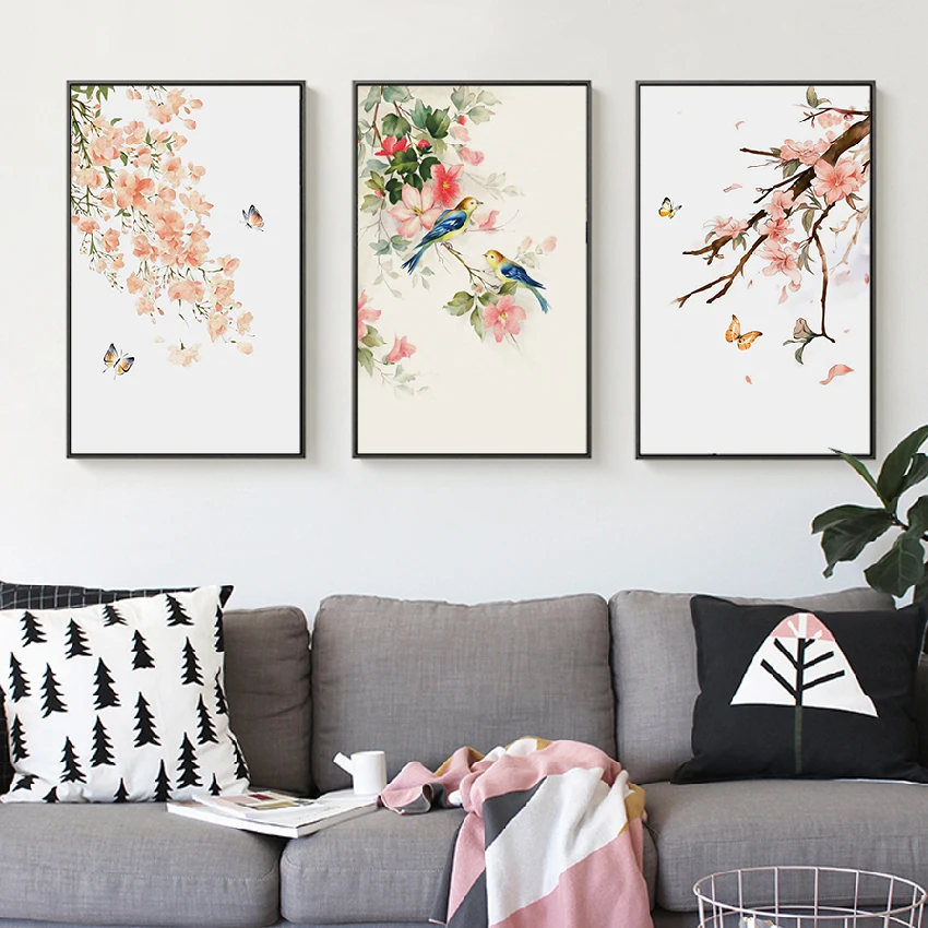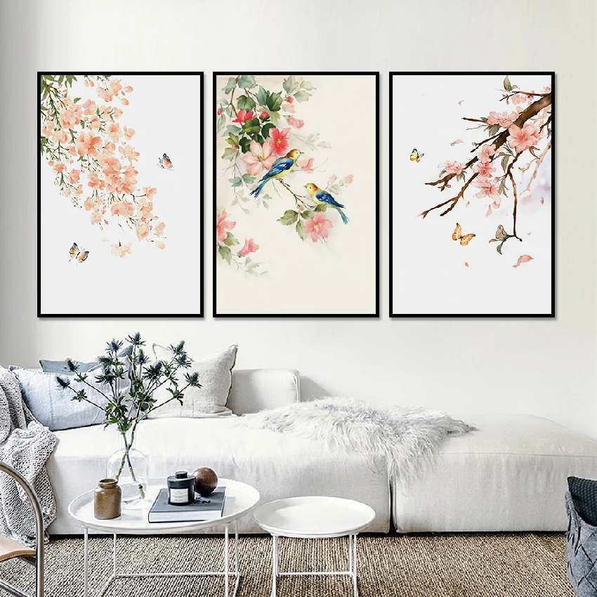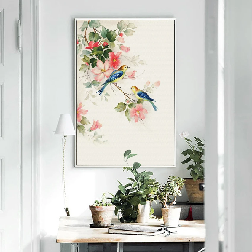 Холст в китайском стиле, чернильная живопись, цветы и птицы, настенные картины, украшение для спальни, постеры с принтом для гостиной