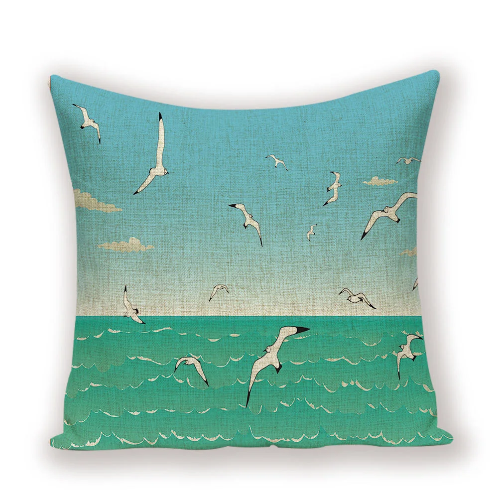 Наволочка для подушки с изображением Морского Пейзажа, чайки, домашний декор, наволочка, лето на пляже, океан