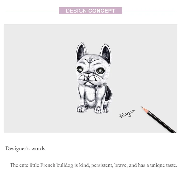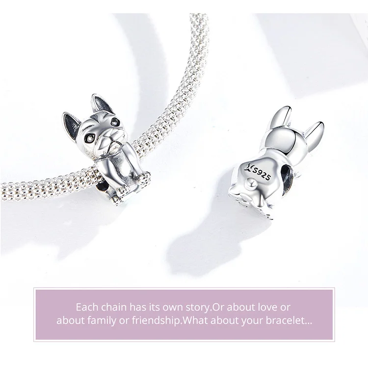 Подвеска в виде французского бульдога, серебро 100% пробы