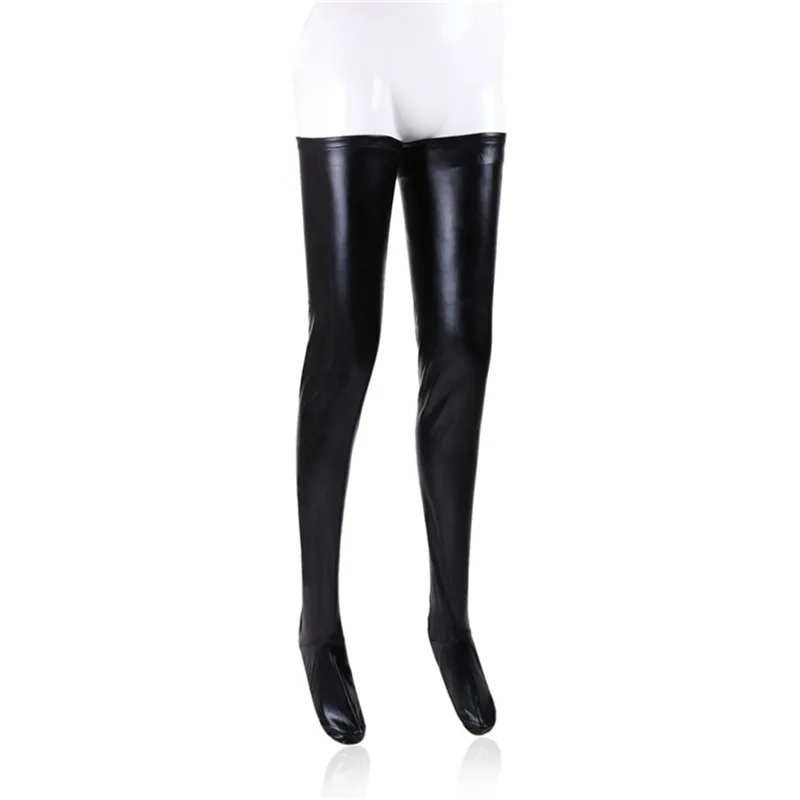 Чулки кожаные черные, до колен, с силиконовой лентой, для танцев на Пилоне, S-2XL, чулки сексуальное женское бельё, большой размер, латексная Клубная одежда