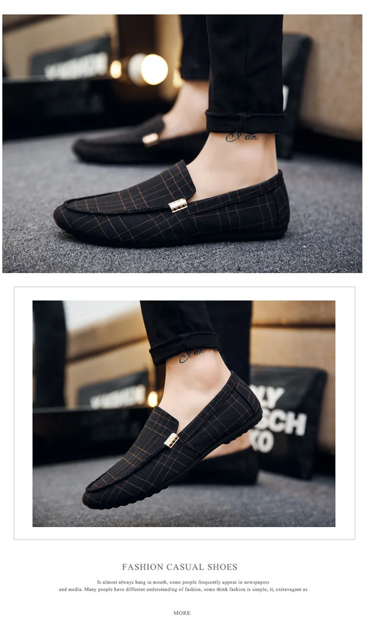 Мужская обувь; Модные лоферы; Дышащие парусиновые кроссовки; Мужская повседневная обувь без шнуровки; Мягкая удобная нескользящая обувь для вождения на плоской подошве; Цвет черный, серый