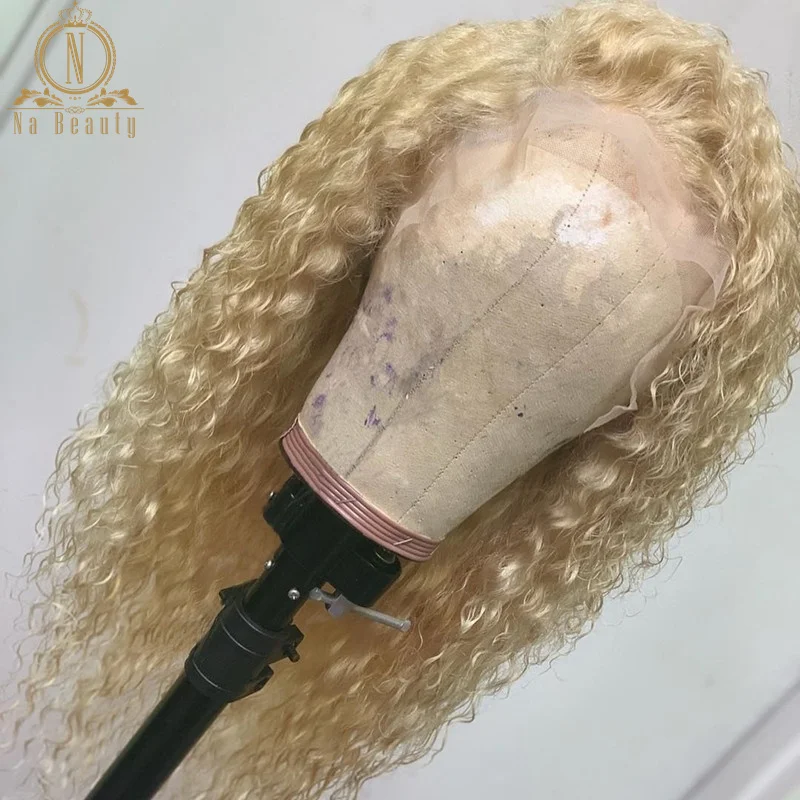 Парик из 613 натуральных человеческих волос с прозрачной сеткой, 360 медово-светлый, 150% кудрявый