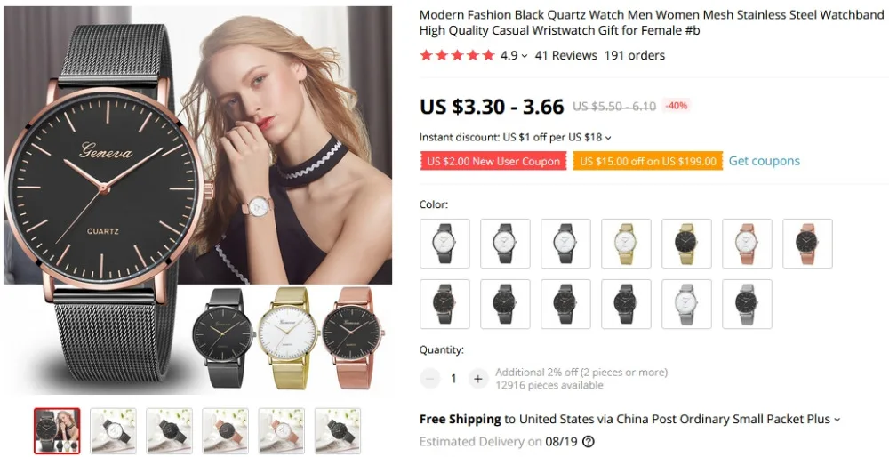 Часы отправили другого цвета, после общения с продавцом вернули половину стоимости товара. Все норм.