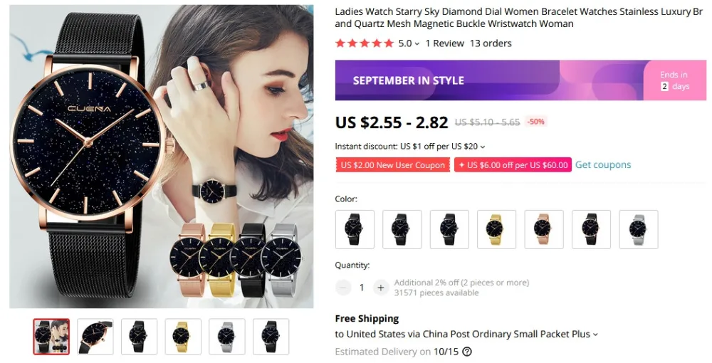 Часы получила за 1,5 месяца. На руке смотрятся хорошо. Проверка двое суток, ход пока точный.
