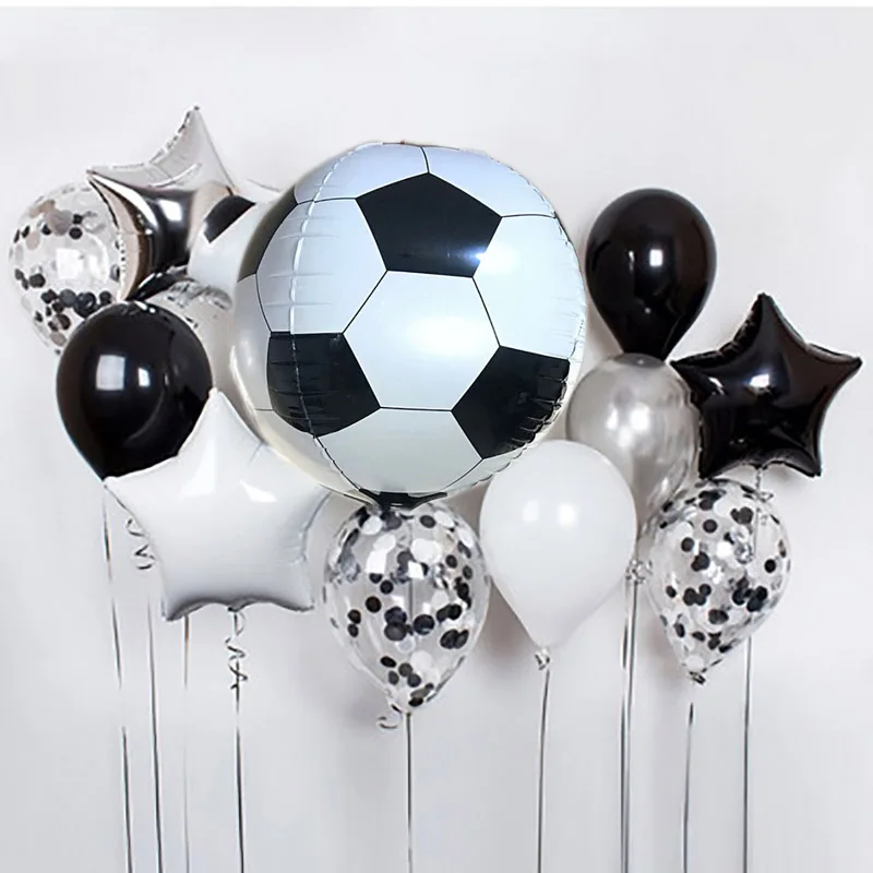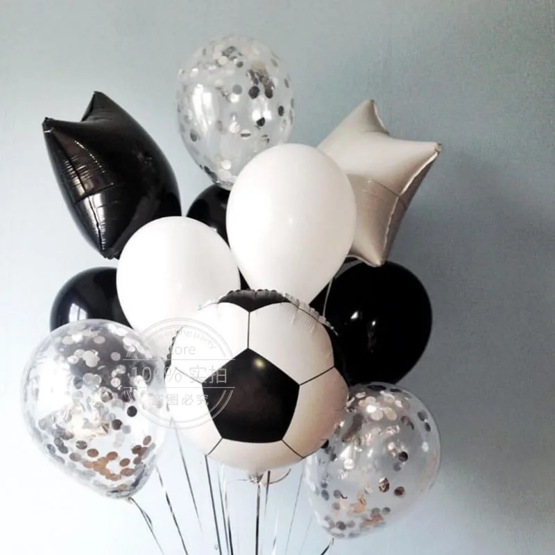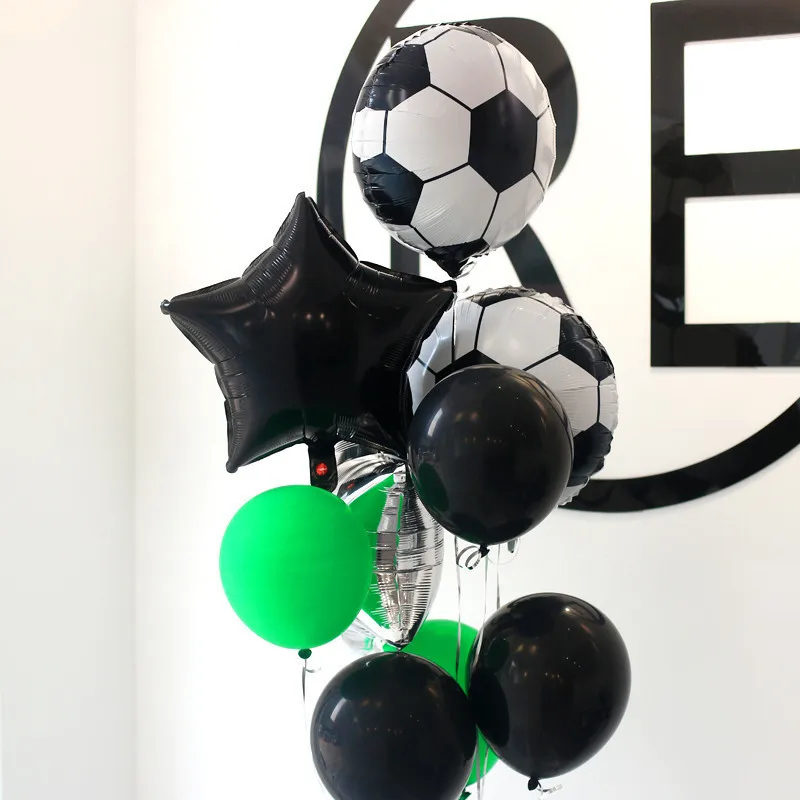 Круглые воздушные шары, 1 комплект, серебряные латексные гелиевые шары с зелеными конфетти для футбольной тематики, спортивных встреч и вечеринка для мальчика день рождение вечевечерние