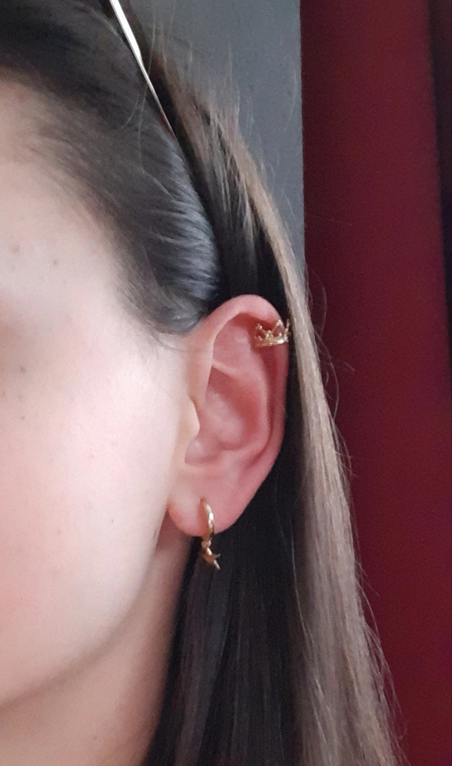 Серьга пришла с браком, металл не ровный. Спайка сломана, тем самым зарапает ухо.