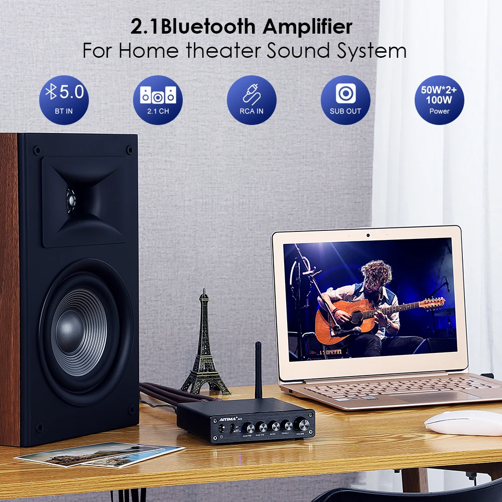 AIYIMA TPA3116 усилитель сабвуфера Аудио Bluetooth звуковой усилитель 2,1 50 Вт x2 + 100 Вт HiFi TPA3116D2 цифровой мощный домашний усилитель
