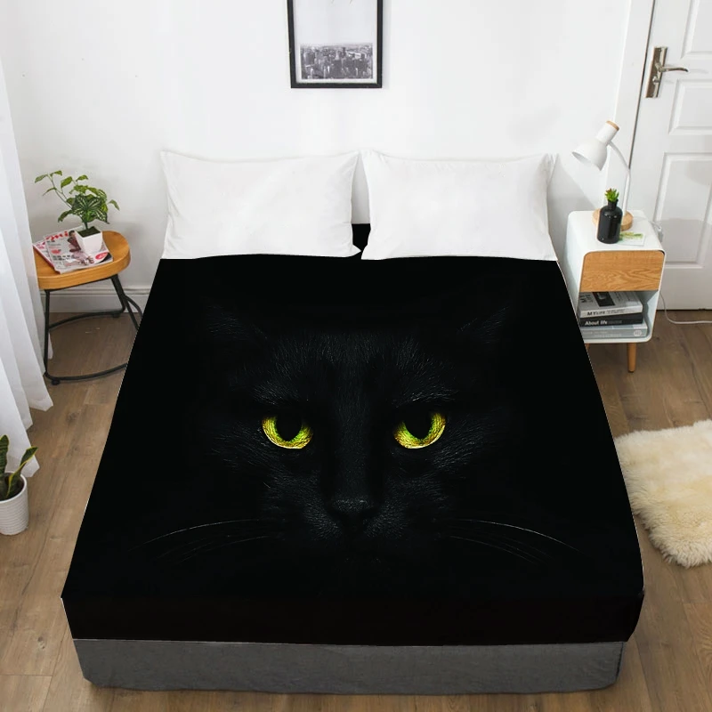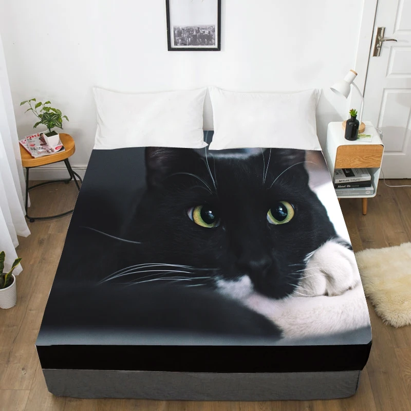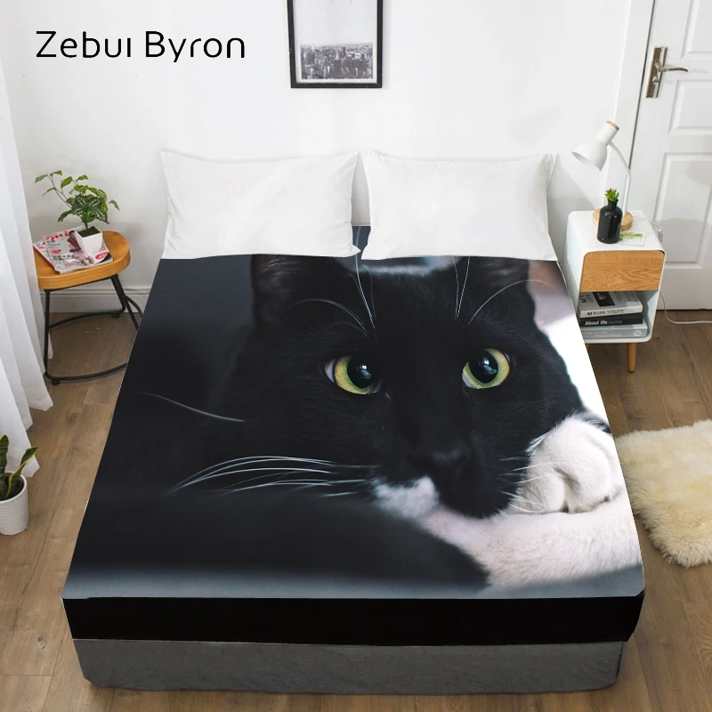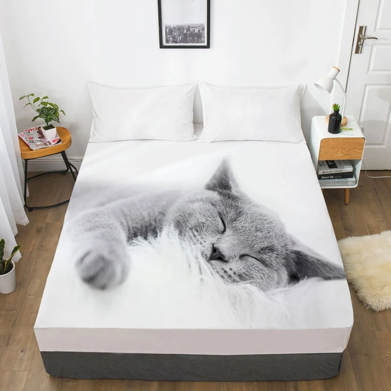 Натяжная простыня 3D, простыня с эластичным рисунком спящего кота, ...