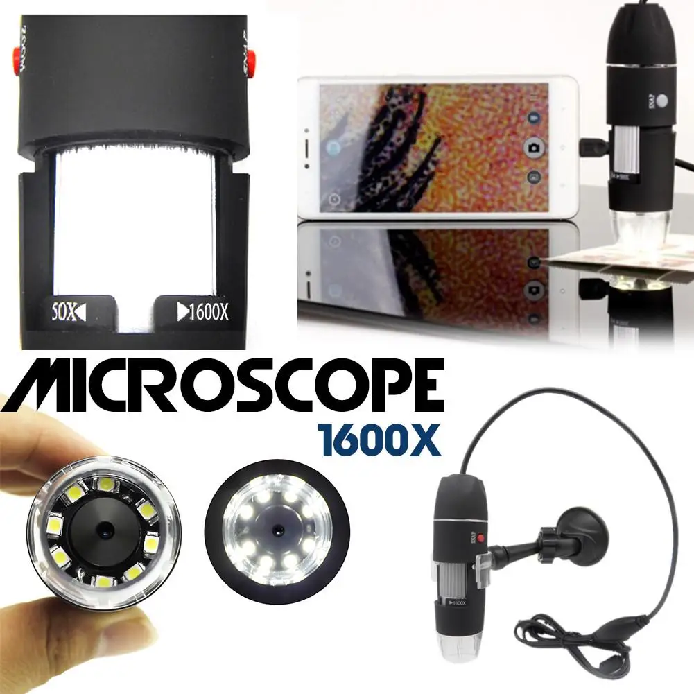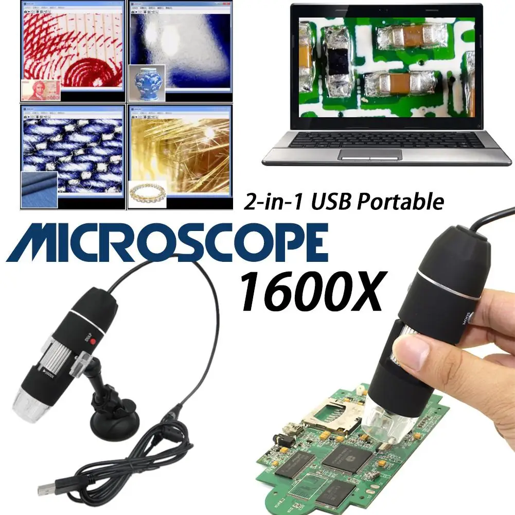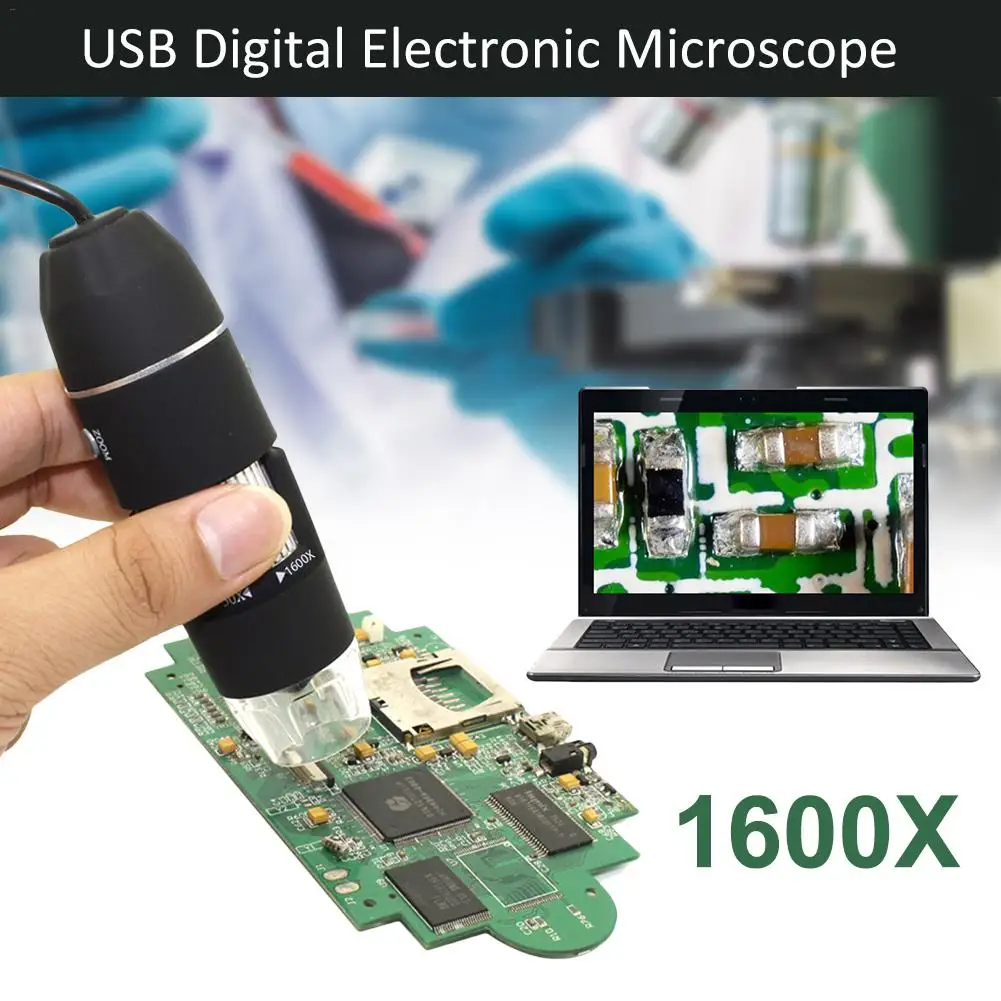 Цифровой USB-микроскоп, микроскоп с увеличением 1600 мегапикселей, 8 светодиосветодиодный, электронная стереокамера-эндоскоп с USB