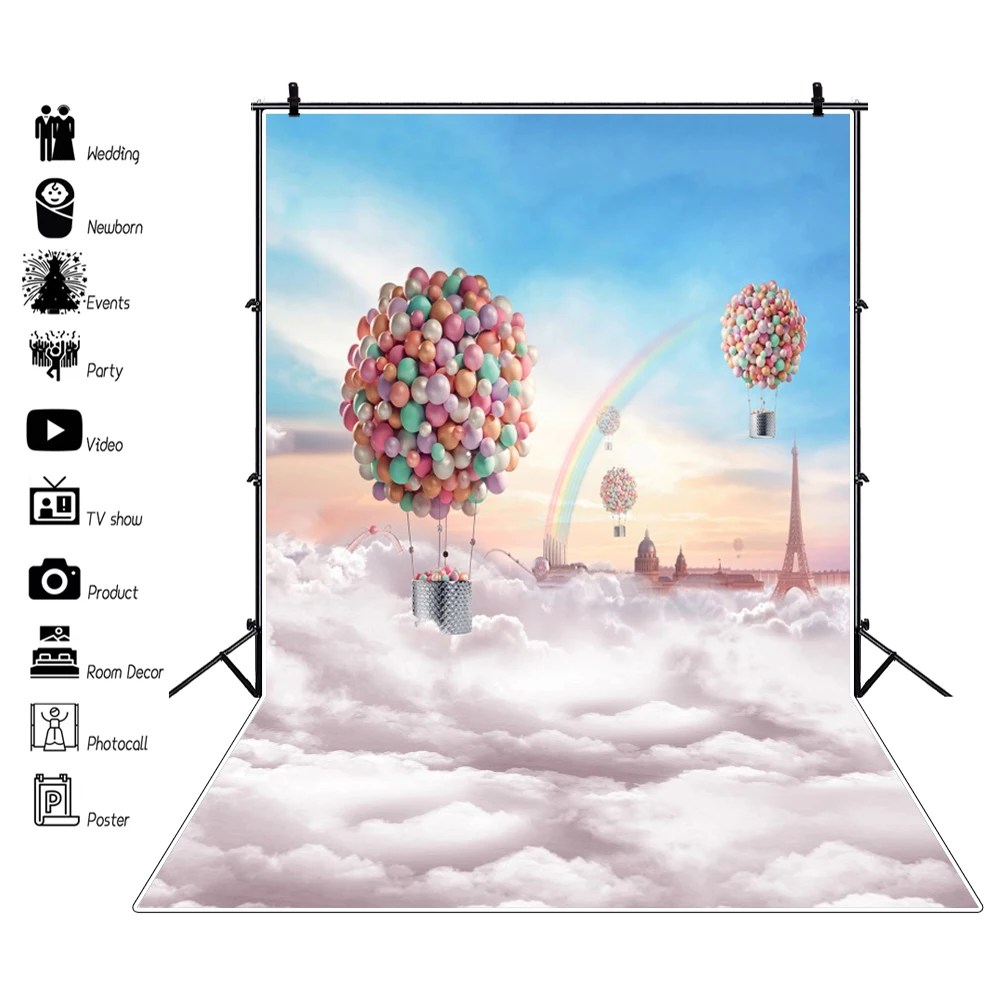 Фон для фотосъемки новорожденных с воздушными Шарами на 1-й день рождения, тортом, вечевечерние