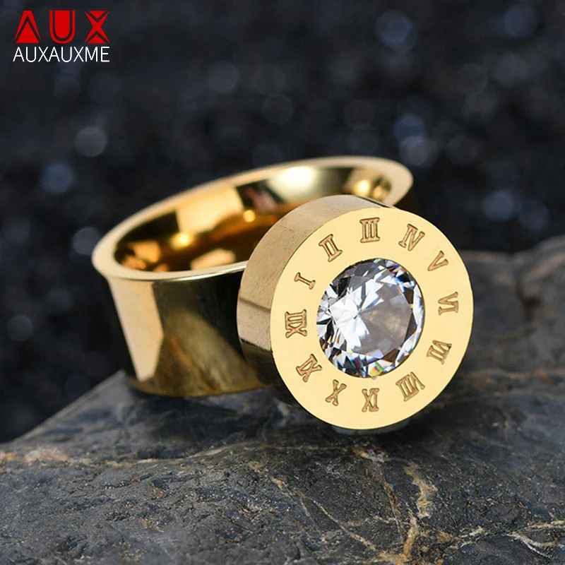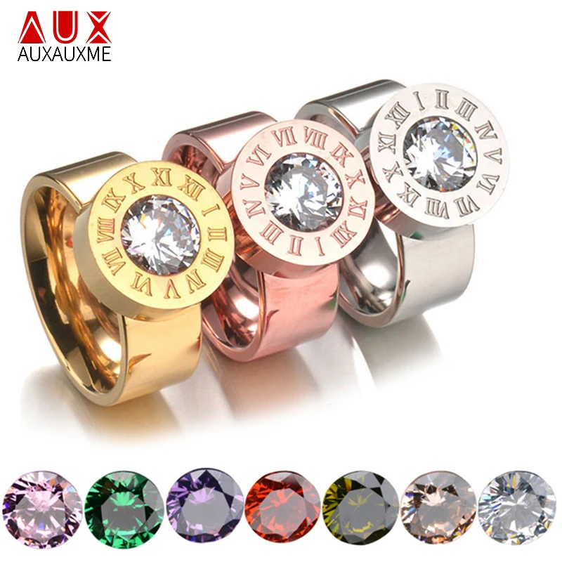 Auxauxme 1 кольцо + 7 шт. CZ камень Сменные римские цифры кольца из нержавеющей стали обручальное кольцо для женщин девушек ювелирные изделия