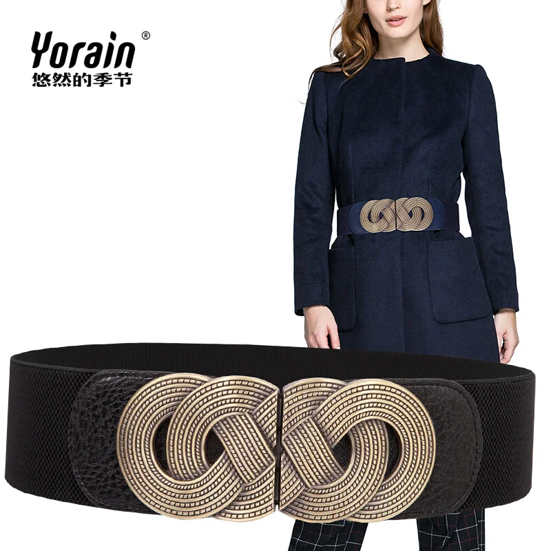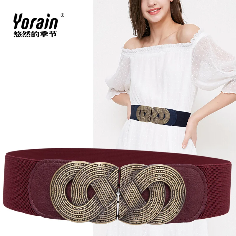 Ремень женский H3304, широкий, корейский, эластичный, с металлической пряжкой, 6 см