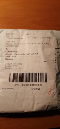 Страна: TR Band Color: Black Band Width: 22mm Доставка: Yanwen Economic Air Mail 15.09.2020