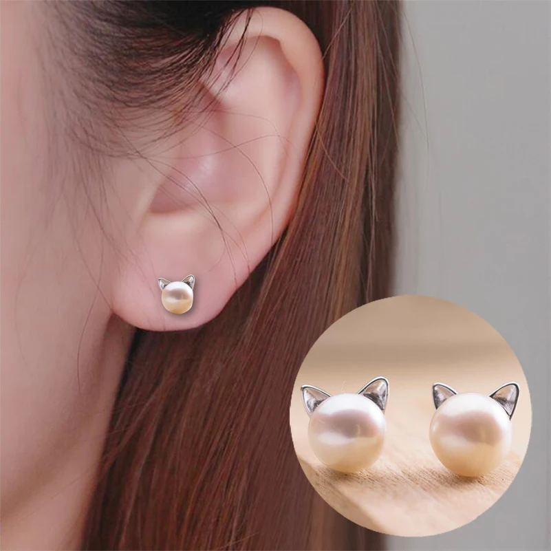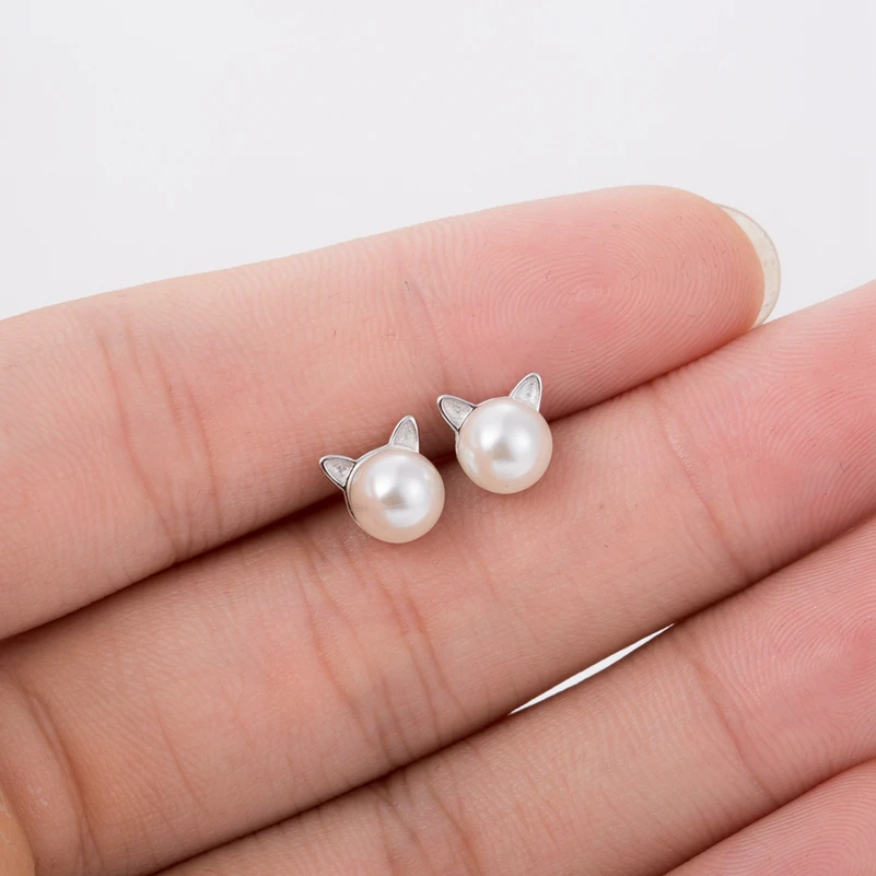 Jisensp Изящные серебряные серьги-шпильки для ушей в мультяшном стиле с милым жемчугом и котом модные ювелирные изделия для женщин и девочек Рождественский подарок