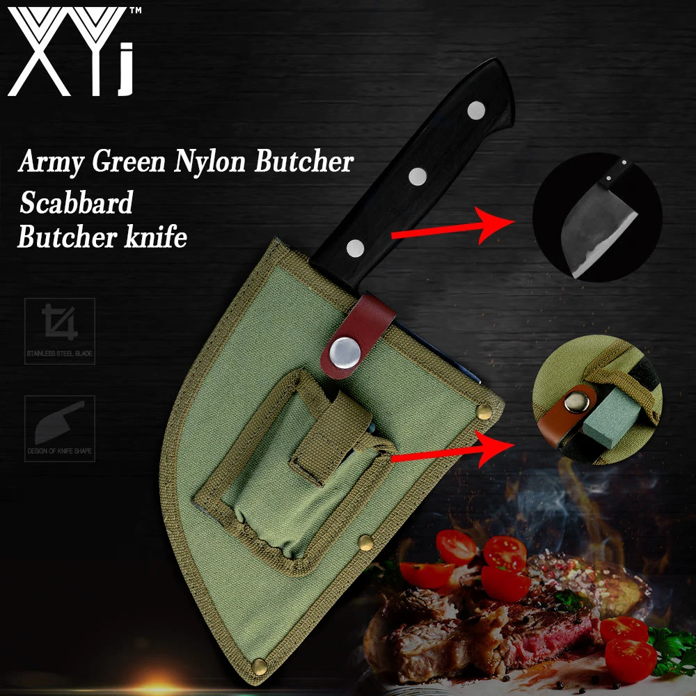 Китайский мясницкий нож XYj из высокоуглеродистой стали, нож мясника ручной работы с нейлоновой оболочкой армейского зеленого цвета и точилкой 7 мм, точильный камень