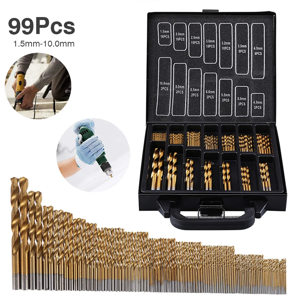 99 шт. титановые сверла из быстрорежущей стали с покрытием 1,5 мм-1...