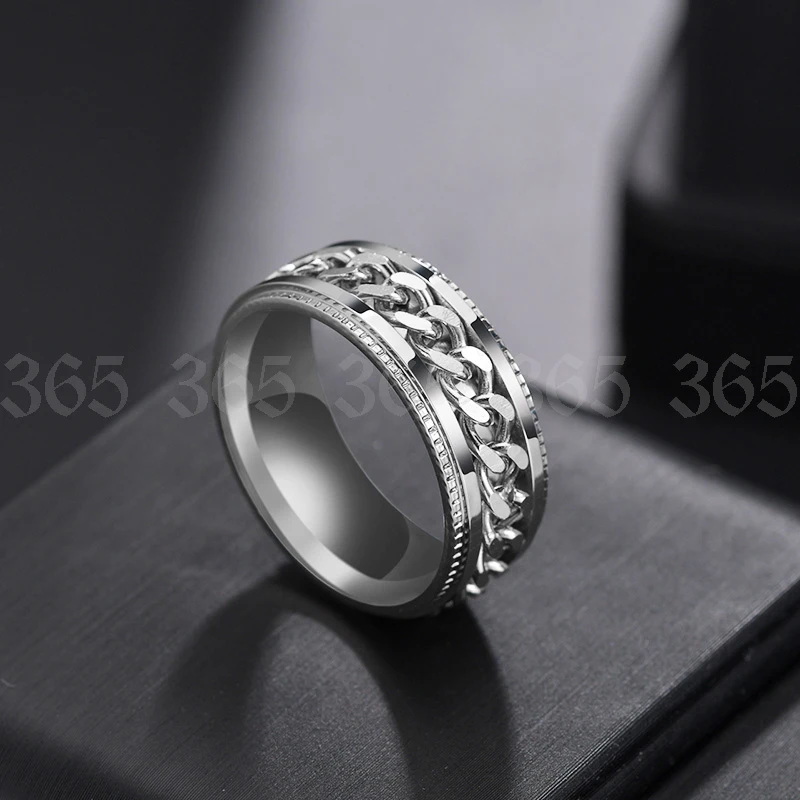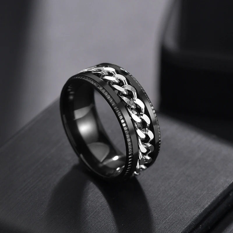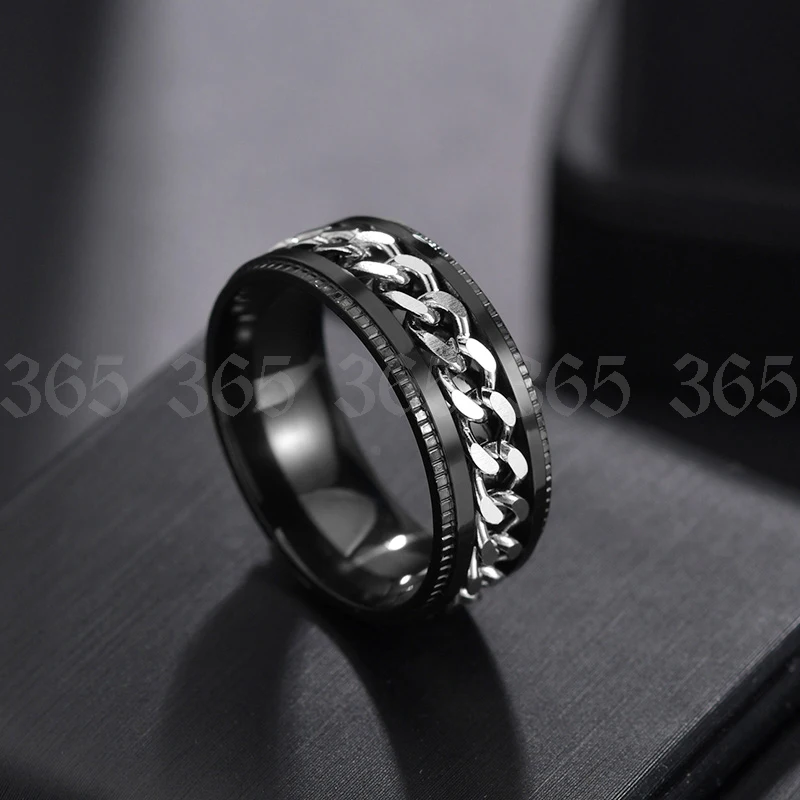 Мужское кольцо в стиле панк, черное, прядильная цепь, с текстурой из нержавеющей стали, для покрышек, 8 мм, 1 шт.