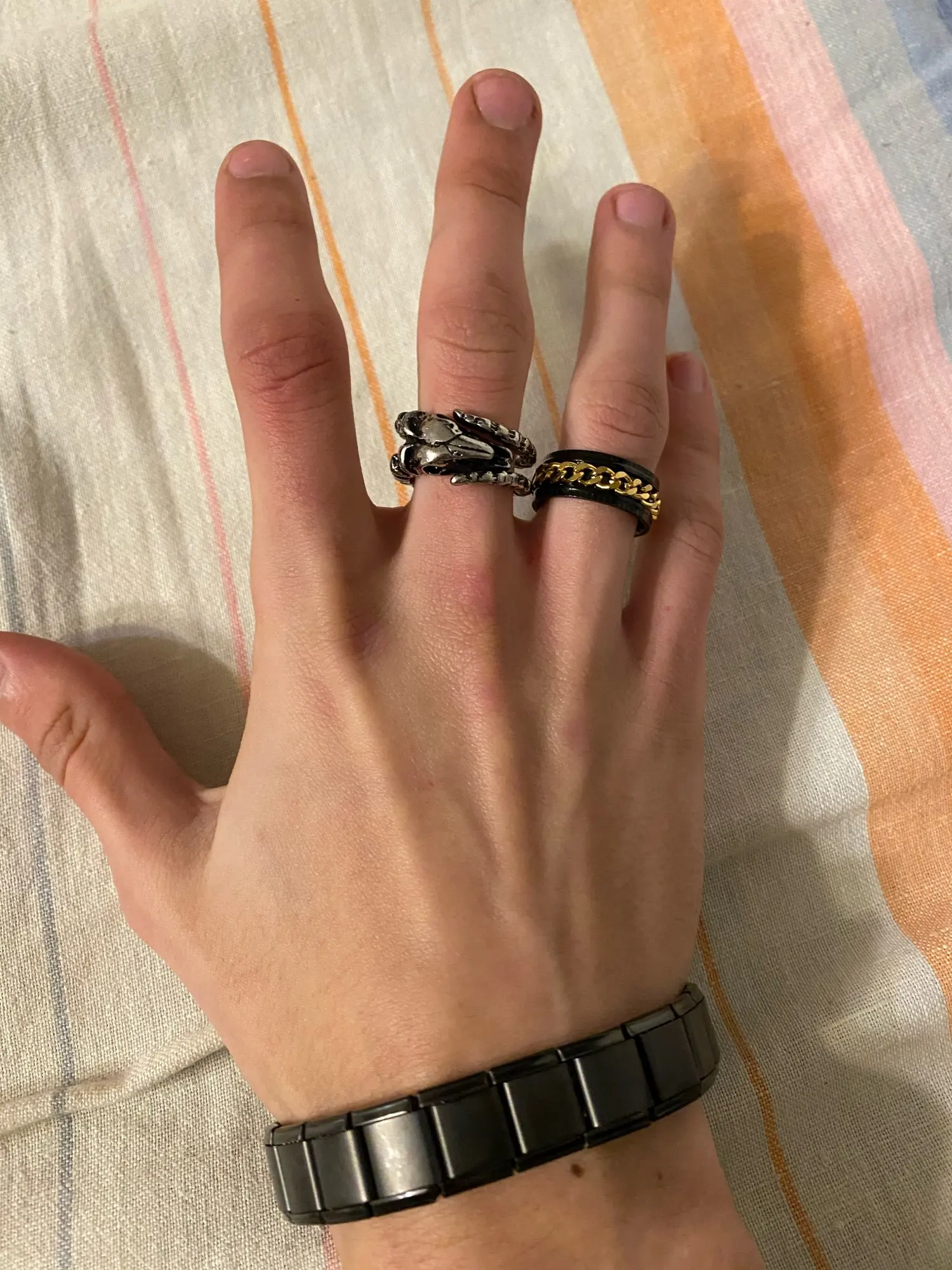 Точно такое как на фотографии. Прикольное кольцо для подростка. Мой доволен.