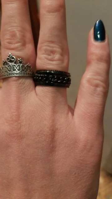 Кольцо красивое, оно имеет спиннинг цепь, и я могу открыть бутылки с ним в целом хорошее кольцо