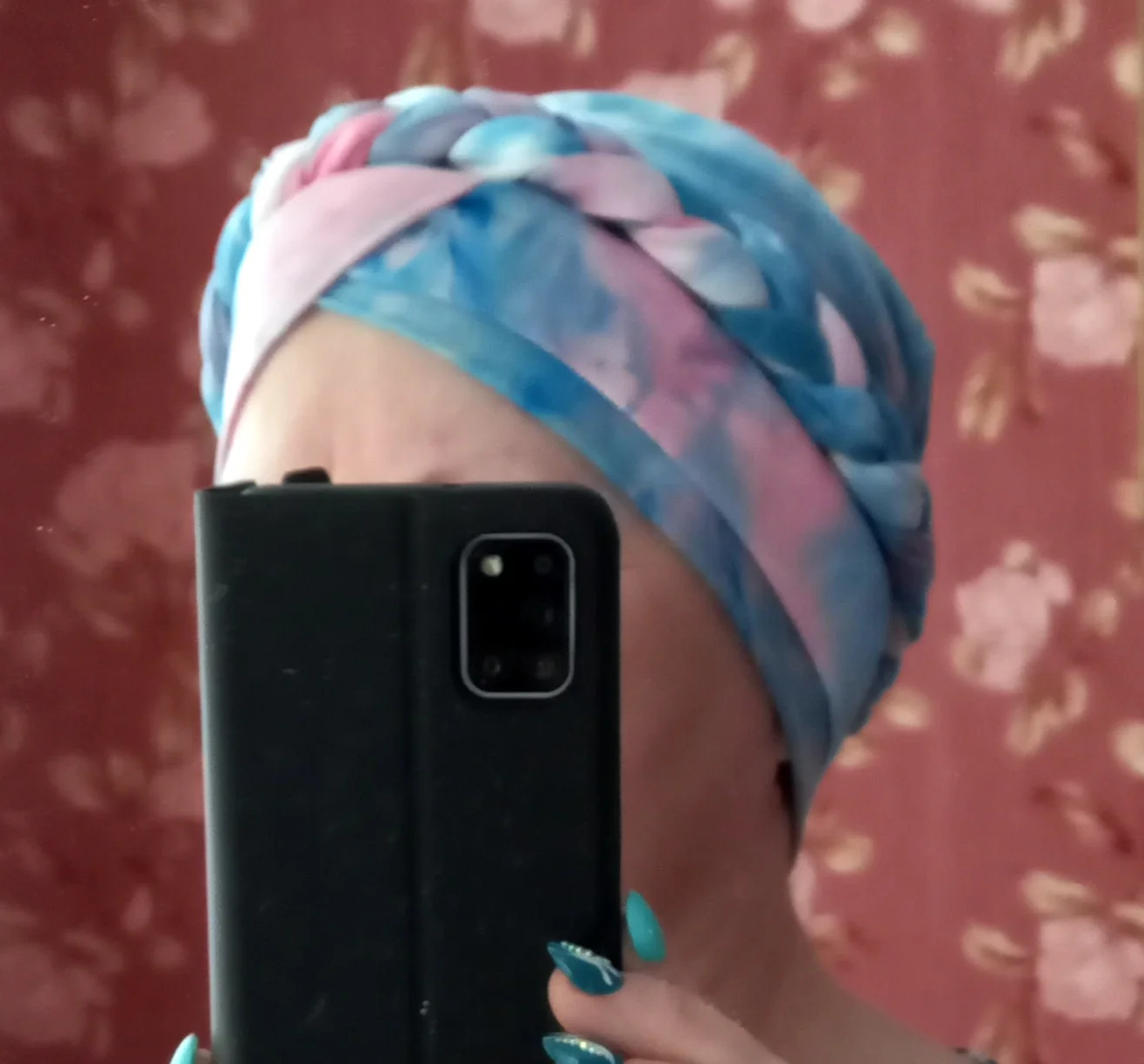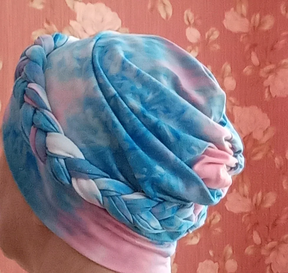 Тюрбанчик хороший, мягкий. Размер универсальный, на мои три волосинки подошел, но лучше будет смотреться на девушках с большим объёмом волос. Все равно мне понравился.